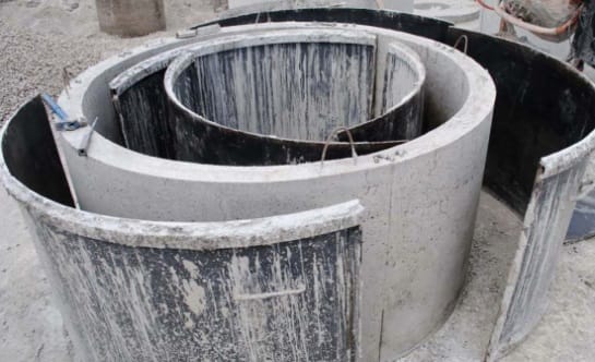 Это широко распространенный вид сборных конструкций, используемых в инженерно-технических работах на стройке. Чаще всего железобетонные кольца используют при копке шахтных колодцев. Не менее популярны они у застройщиков как прочные и долговечные емкости для септиков (выгребных ям). В этом случае их дополняют бетонной крышкой с отверстием.