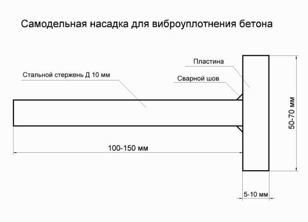 Виброуплотнение также играет важную роль. Без него не удастся удалить воздушные пузыри и раковины, снижающие прочность бетона. Штыкованием проблему уплотнения можно решить, но лишь отчасти. Если у вас нет площадочного вибратора, то можно использовать обычный перфоратор. Вместо пики в него нужно зажать обрезок арматуры с приваренной к ее концу толстой стальной пластинкой.