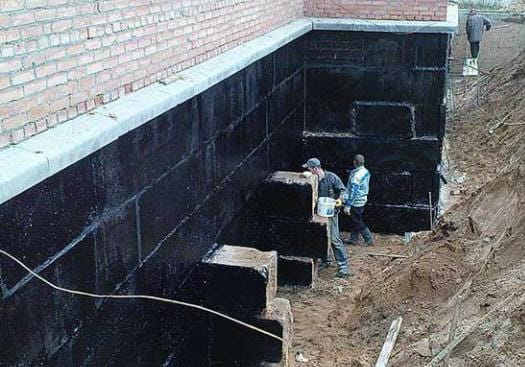 Мастику наносят широкими плоскими кистями, распылителями, шпателями либо валиками, контролируя равномерность толщины изоляции. Полосы располагают параллельно, с небольшими «нахлестом» (5-10 см). После высыхания одного слоя, наносится следующий. Для гидроизолирования кровель, бассейнов и подвалов используют от 2 до 4 слоев изоляции, укрепляя их армирующей стеклосеткой. Для вертикальных стен (нанесение ведется снизу вверх) обычно хватает 2-слойного покрытия.