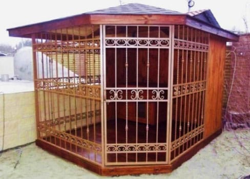 Кроме того будка может иметь зону выгула, обнесенную сварной сеткой или решеткой.