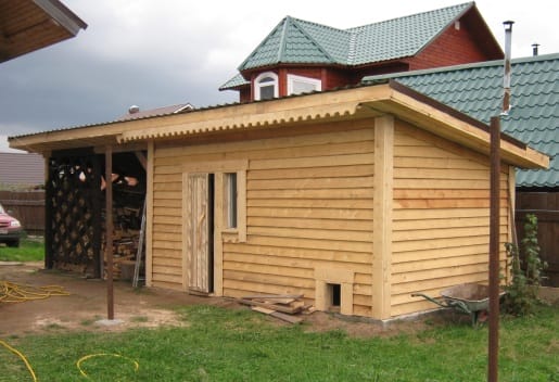 Если сборка деревянного каркаса для вас не является проблемой, то блок хозяйственных помещений вы осилите за одну неделю. После установки несущего каркаса, обшивки стен сайдингом или доской, останется утеплить строение (эковатой или минватой).