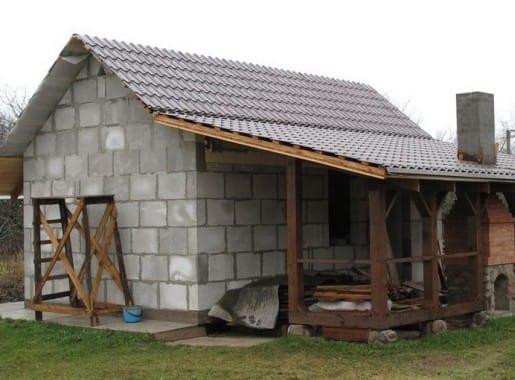 Можно построить хозблок из кирпича или пенобетона. Он будет долговечнее деревянного, но потребует больше времени и сил для возведения.