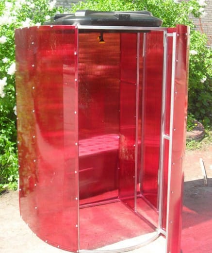 Любителям готовых решений предлагаются душевые кабины из поликарбоната с плоским баком, сборка которых занимает считанные часы.