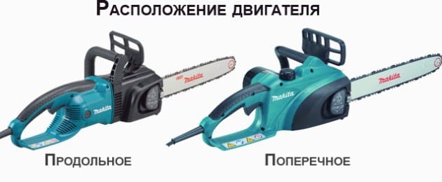 В зависимости от расположения электромотора относительно пильной цепи есть два варианта: поперечный и продольный. Первый привлекает внимание меньшей стоимостью, но оптимален лишь для поперечного распила. Достоинство продольной компоновки – хорошая весовая балансировка. Она особенно важна для резки под углом и над головой.