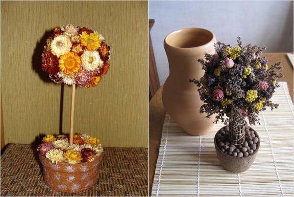 Более сложным считается изготовление объемных картин, в которых используют срезанные соцветия с сохраненной формой.