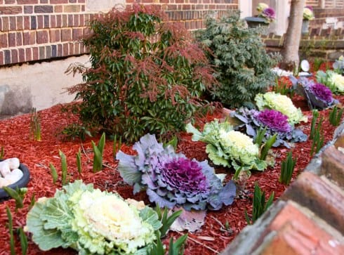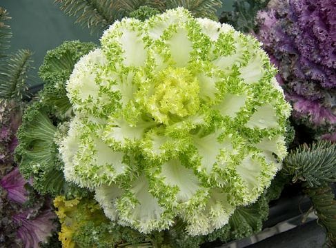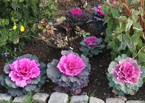 Особенно декоративна капуста осенью, а когда наступят устойчивые заморозки ее можно с комом земли выкопать и посадить в горшок, который ставят в доме в прохладном месте. Так он будет радовать глаз вплоть до Нового Года.