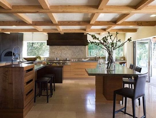 Помимо традиционных деревянных балок в современном стиле можно встретить и металлические, а также открытые бетонные конструкции. Такие балки особенно хороши в таком стиле, как «лофт».