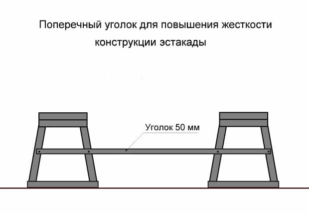 Для того, чтобы сделать эстакаду своими руками максимально устойчивой, можно установить на ней поперечные связи из стального профиля. Его крепят болтами к тумбам. Эта мера не будет лишней, поскольку повысит жесткость всей конструкции.