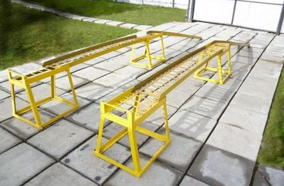 Чаще всего мини-эстакады изготавливают из профильного металла (труб, уголка и арматуры). Они долговечнее и прочнее деревянных. Пример такой конструкции вы видите на фото №3.