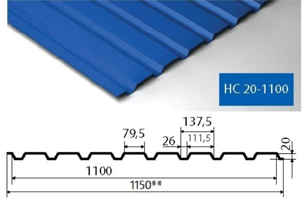 Нетрудно догадаться, что чем выше профиль и толще лист, тем он жестче, но при этом и дороже. Экономия в данном случае должна быть разумной. Поэтому мы не советуем использовать для облицовки дешевый материал марок С-8 и С-10. Он требует более частой установки стоек и от любого неосторожного «тыка» покрывается вмятинами. Оптимальный вариант – профлист марки НС-20 толщиной 0,5 мм.