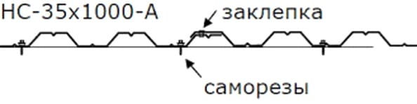 Листы крепят к продольным связям каркаса (трубам, уголку) с помощью саморезов, вкручивая их в нижнюю часть волны. Верхний нахлест фиксируют заклепками для более плотного контакта.