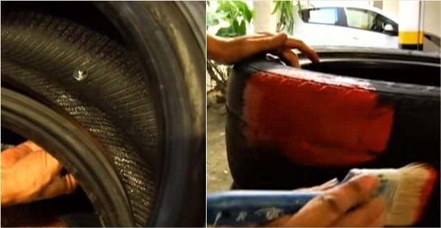 - Шкатулки-пуфики для хранения из шин малого диаметра