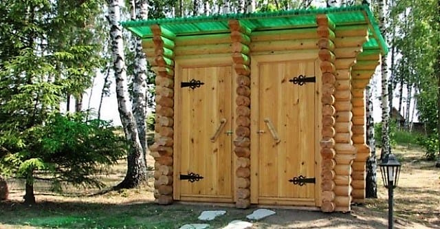 Многих владельцев дач не устраивает простоватый вид туалета «скворечника». Стремясь к оригинальности, они возводят на участках роскошные хоромы из бревен для «уединенных размышлений».