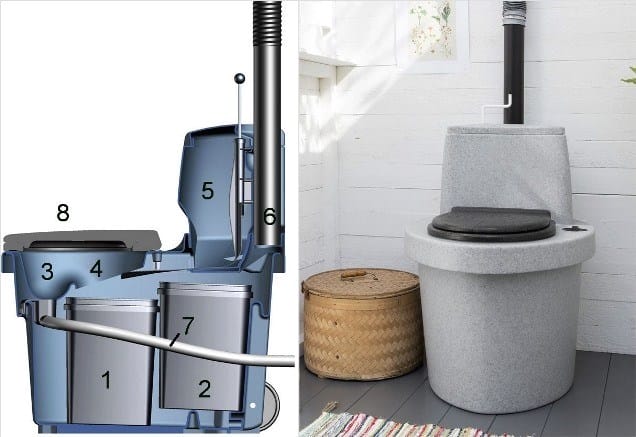 Усовершенствованный вариант пудр-клозета – торфяной биотуалет, предлагаемый сегодня на рынке. Он состоит из пластикового корпуса, внутри которого размещается одна или две емкости. Сверху устанавливается бачок с торфяной смесью и дозатором.