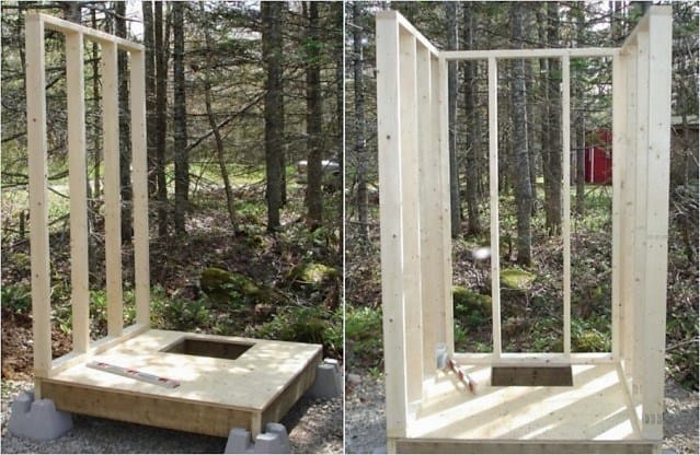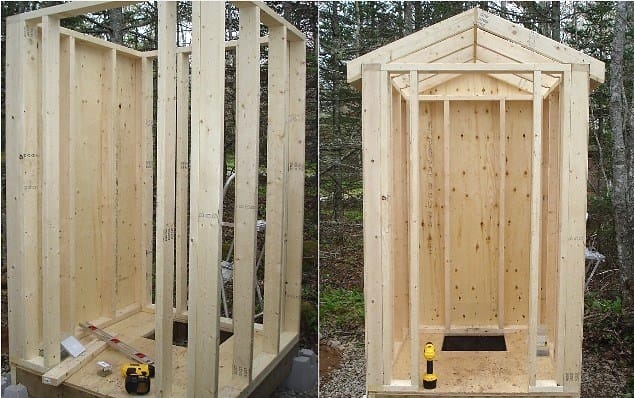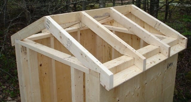 Закончив с крышей, приступают к сборке каркаса «подиума». В нем будет установлена накопительная емкость «пудр-клозета» и сделано отверстие для сиденья с крышкой.
