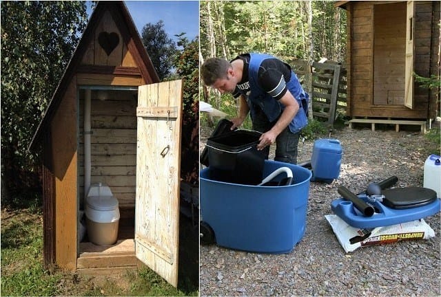 Для устранения неприятного запаха конструкция снабжается вытяжной трубой, выводимой на крышу кабинки. Опорожнять контейнеры в таком туалете приходится не чаще одного раза в неделю. Это достигается благодаря разделению жидкой и твердой фракции отходов.