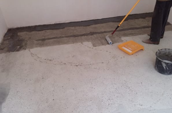 2) Если на стяжке присутствуют масляные пятна, их нужно обработать порошком, входящим в комплектацию. В случае пористой поверхности, рекомендуется хорошо ее прогрунтовать грунтовочным материалом глубокого проникновения для внутренних работ.