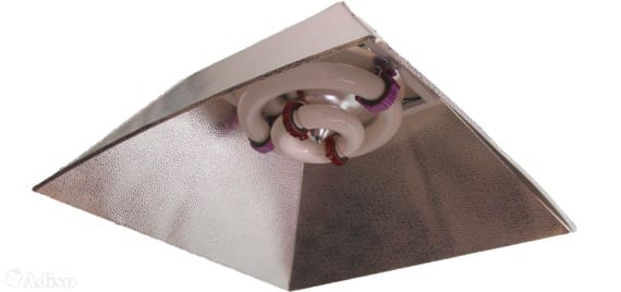 Одна индукционная лампа (60 Вт) с рефлектором на расстоянии 30 см от растений создает световой поток мощностью 3 692 люмен. Подсчитать необходимое количество осветительных приборов несложно: 8 000 / 3 692 = 2,16. Округляем до целого числа и получаем 2 лампы.