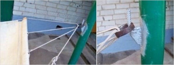 Последняя операция – регулирование положения веревок и выравнивание гамака. Ее удобнее всего проводить, подвесив гамак на крюки, вбитые в столбы или привязанные к столам деревьев.