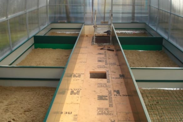 Прежде чем устанавливать каркас необходимо определить, как лучше расположить грядки в теплице и какого типа они будут (в дачном садоводстве наиболее часто встречаются наземные, настольные и высокие в виде коробов).