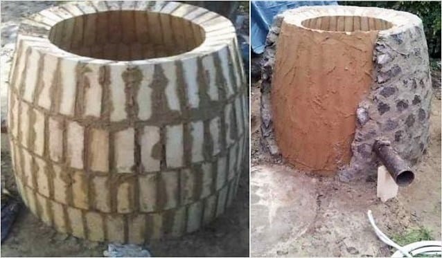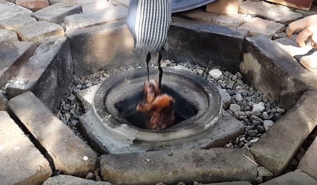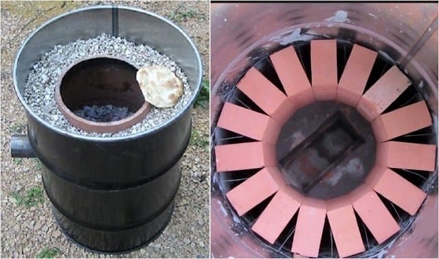 В боковой стенке вырезается круглое отверстие и в него вставляется стальная поддувальная труба, выходящая под горшком. После завершения описанных манипуляций, мы получаем работоспособную конструкцию. В ней можно выпекать лепешки, готовить мясо и овощи. Она лишена изящной округлости, присущей классической глиняной «амфоре», но по вкусовым качествам готовых блюд ей не уступает.