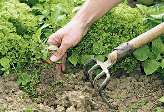 В борьбе с сорными растениями помогут резиновые перчатки и тяпка (лучше даже вилы, которые не повреждают корни сорняков, а целиком их выдергивают). Последний инструмент выполняет сразу две функции: рыхление почвы и удаление вредителя. Желательно ежедневно выполнять прополку, удаляя новые ростки сорняков. Только когда культуры станут большими и крепкими, можно сократить свои походы в огород, сократив их до 3-4 раз.