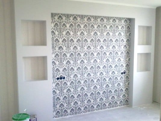 Оформить ниши или выступающие части конструкций из гипсокартона можно обоями, отличающимися от цвета основных стен помещения.