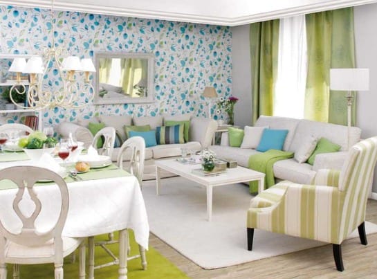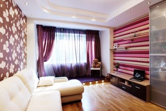 С помощью обоев разного цвета или рисунка можно разделить помещение на две и более зоны.
