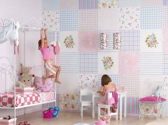 Лоскутное шитье в стиле «пэчворк» можно имитировать на стенах, оклеив их фрагментами обоев с разным рисунком. Первое правило – это сочетаемость полотен, второе – аккуратность и точность. Такая работа должна выполняться квалифицированными мастерами, но результат стоит того.