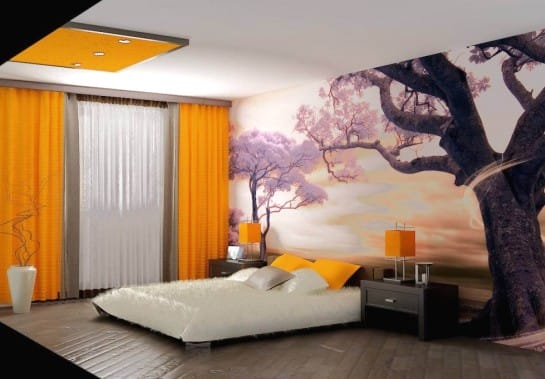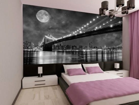 Не менее интересным решением является сочетание обычных рулонных материалов с фотообоями. Таким образом, помещения приобретают дополнительную глубину.