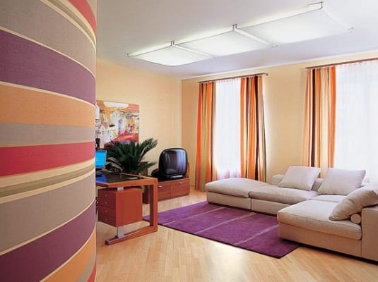 - горизонтальные полосы «расширяют» пространство, но «опускают» потолок;