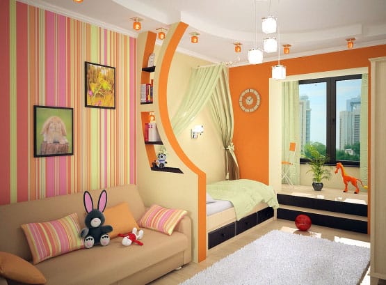 Например, выделить зону отдыха, рабочую или игровую зоны в детской комнате. Выгодно подчеркнуть наиболее значимую часть жилого пространства.