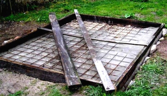 - Укладываем на песчано-щебеночную подушку стальную кладочную сетку (ячейка 5-10 см) и заливаем ее крепким бетоном (М200);
