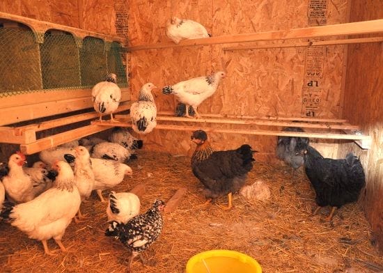 Если вы решили не утеплять пол в курятнике, то в зимний период не жалейте сухой подстилки из соломенной сечки или опилок. Ее толщина в морозные месяцы должна быть не менее 20 см.