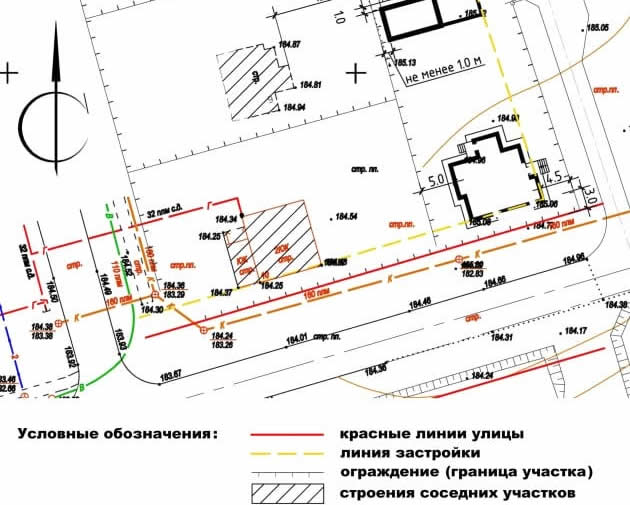 В этом случае рекомендуем его «задвинуть» вглубь участка, и согласовать такое расположение с главным архитектором города или района и со всеми заинтересованными организациями, выполнив соответствующее обоснование на основе предоставленной схемы генерального плана.