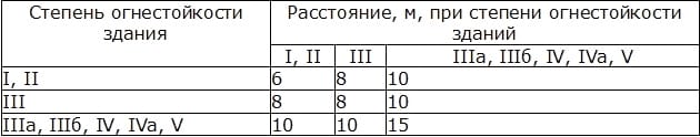 Расстояние между стенами зданий без оконных проемов допускается уменьшать на 20%, за исключением зданий IIIa, IIIб, IV, IVa и V степеней огнестойкости.