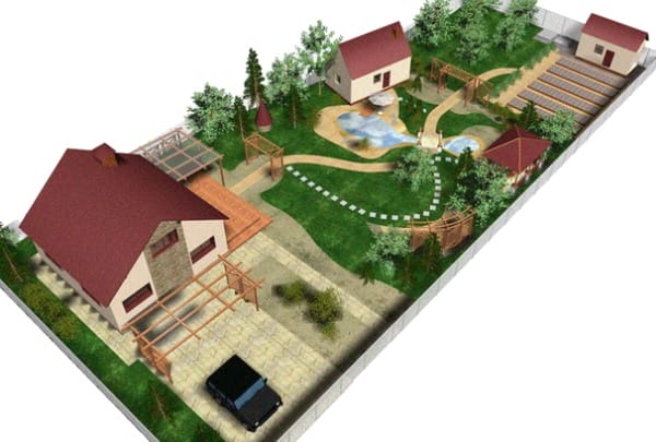 Застраивая территорию на 6-10 сотках, не перегружайте ее строениями, оставьте место для небольшого сада и уютного уголка для беседки. На участках же площадью в 12-15 га, помимо основного жилого дома, гаража и бани, можно разместить небольшой гостевой домик, или организовать подсобное хозяйство, не забыв при этом соблюсти санитарные разрывы. Расположение строений во многом зависит и от того, будет ли на участке огород, посадки светолюбивых и тенелюбивых растений.