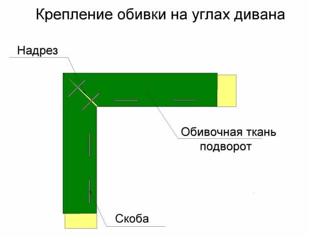 Последний этап изготовления – обшивка дивана тканью. Ее можно купить в специализированном магазине, сделав предварительный расчет площади обшивки и не забыв про запас в 5-10%, необходимый для раскроя и подворота на каркасе.