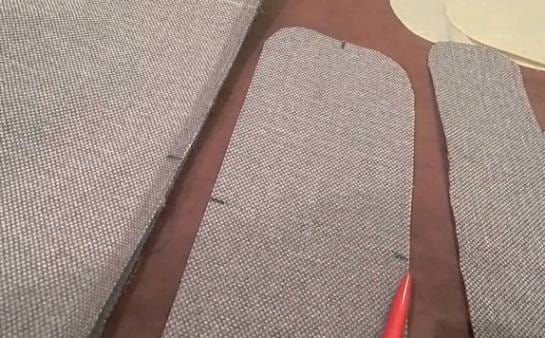 Для этого все лицевые части корпуса и спинки нужно обмерить и по полученным размерам выкроить куски материала. Крепятся они с помощью степлера на невидимых торцах панелей. Для того, чтобы ткань не морщилась на углах, сделайте на ней надрезы и плотно натяните перед пристреливанием скоб.