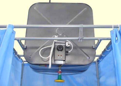 В душах для дачи с подогревом воды, как правило, используют электрические трубчатые электронагреватели (ТЭНы). Но за таким нагревателями нужно внимательно следить, когда они нагреют воду до приемлемой температуры, их следует выключать. Обычно нагрев длится 3-4 часа.