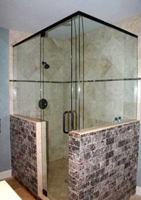 Если душевая кабина из плитки будет ограждена экраном на металлическом каркасе, то не забудьте заложить в кирпичную кладку крепления для его стоек.