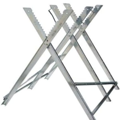 Кроме привычного варианта из деревянного бруса, сегодня можно найти очень интересные разборно-сборные конструкции металлических козел, которые специально адаптированы под работу электрической или бензопилой.