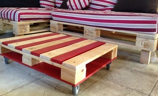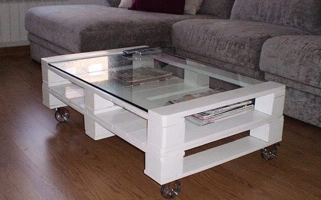 Наполнить гостиную особой энергетикой поможет практичный журнальный столик. Сделать его очень просто, достаточно разобрать и распилить один поддон под нужные размеры. После обработки всех деталей конструкцию собирают подшивая снизу толстой фанерой и крепят мебельные колесики.