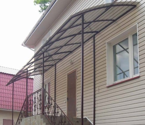 Вопрос выбора материла, который оптимально сочетается с поликарбонатом и придает козырьку максимальную прочность, далеко не праздный. Кроме соблюдения требований СНиП при конструировании такого навеса необходимо учитывать и эстетическую сторону вопроса.