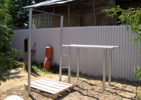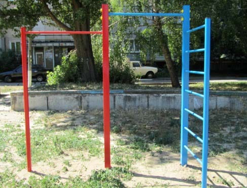 Во-первых, обычный уличный турник. Что он собой представляет, знают все. Кроме того, его можно использовать и в хозяйственных целях, например, для выбивания ковра. Он может быть простым (иметь одну высоту), а может быть многоуровневым. В последнем случае высота уровней может соответствовать возрасту членов семьи – от малышей до взрослых.