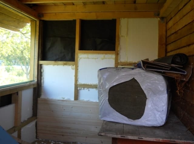 (Автор не учел тот факт, что пенопласт не дышит. Поэтому между внутренней деревянной обшивкой и пенопластом может завестись плесень – прим. редакции)