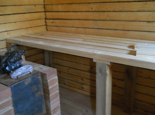 Пенопласт в парилке — материал неприемлемый! При сильном нагреве он выделяет токсичные вещества. При его контакте с половой доской начинается гниение древесины. Лучший вариант – утепление пола эковатой, минватой или керамзитовым гравием. – прим. редакции