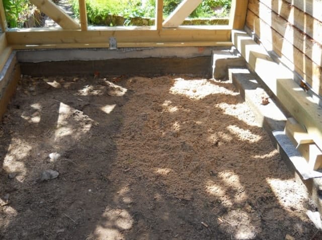 Чтобы по весне под полом не скапливалась вода, засыпал туда с десяток тележек песка.