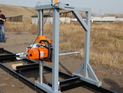 По доскам пилорама из бензопилы также будет работать без проблем, только в этом случае появится слишком много отходов, поскольку ее режущая цепь в несколько раз толще пилы ленточной пилорамы.