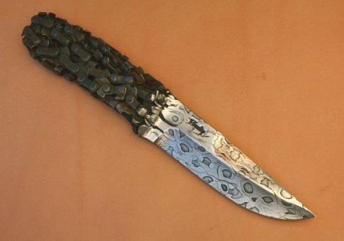 Хороший хозяин ничего не выбросит зря, особенно если речь идет о качественном металле. Если вы разбираетесь в нюансах термической обработки металла, то сможете сделать цельнокованый нож из цепи, отслужившей свой ресурс.
